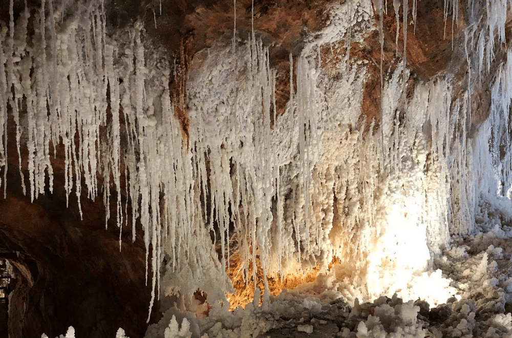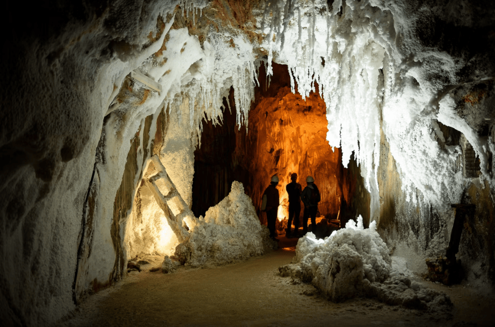 A continuació arribarem fins a les antigues Mines de la Muntanya de Sal de Cardona (entrada inclosa). Accedirem fins a l’entrada de la mina i proveïts d’un casc, on farem un recorregut guiat a 86m de profunditat: A l’interior de les galeries de la Muntanya de Sal, obertes des de 1997, es manifesten amb tota la seva esplendor i espectacularitat els diferents plecs i vetes del jaciment i la diversitat de minerals. Un lloc únic al món!. Un passeig per les antigues instal·lacions mineres: Sota la imponent imatge del castellet del pou d’extracció del mineral, Maria Teresa, s’estén l’àrea museogràfica: un espai obert que explica la història de l’explotació de les sals, la geologia, la mineralogia i la botànica d’aquest Espai d’Interès Natural, la Vall Salino. Després ens acostarem fins a Cardona per visitar aquesta agermanada població.